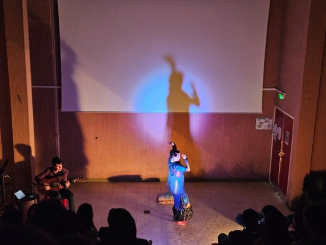 Le projet Scontru poético di Mediterranée s’est poursuivi avec un deuxième temps fort consacré à l’Espagne. Le vendredi 4 avril 2025, le lycée a accueilli deux artistes flamenco : la danseuse Chely Torito et son guitariste chanteur Nino Garcia, venus présenter leur spectacle jeune public « Odisea ».