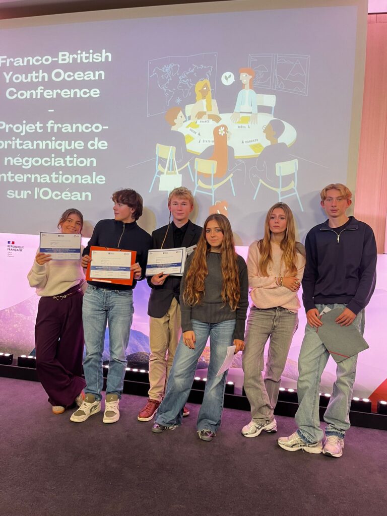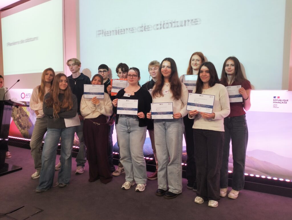 Nos lycéens ont rejoint 60 élèves et 20 professeurs venus de toute la France et de l’Écosse au siège de l’AFD – Agence Française de Développement pour une grande simulation de COP dédiée à la protection des océans. Mélanie Lozano (coordinatrice de projet / anglais), Grégory Richard (responsable élèves 2nde 7 / HG et EMC) et Nathalie Pagano Fara (responsable élèves 2nde 2 / HG et EMC) ont préparé les élèves à ce défi et ont accompagné à Paris les diplomates sélectionnés dans leurs classes respectives